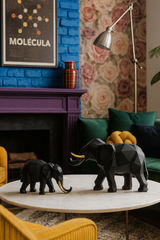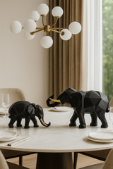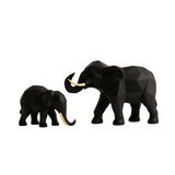 Add a touch of contemporary elegance to your space with this geometric elephant sculpture set. Crafted in matte black with striking gold tusks, these decorative pieces combine minimalist sophistication with symbolic meaning—representing strength, wisdom, and protection. The faceted design offers visual texture, making them perfect for coffee tables, consoles, or bookshelves in modern, industrial, or eclectic interiors.