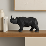 Make a bold statement with this geometric rhinoceros sculpture, designed in a contemporary low-poly style. Crafted in matte black resin, its faceted surfaces and angular lines give it a striking, sculptural presence. Symbolizing resilience and power, this decorative piece is perfect for shelves, consoles, or office spaces that embrace modern or industrial aesthetics.