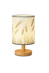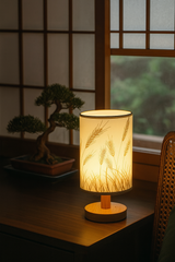 Bring a sense of harmony and gentle beauty to your interior with the Zen Wheat Table Lamp. Inspired by oriental aesthetics and the quiet elegance of nature, this lamp features a cylindrical fabric shade delicately printed with golden wheat motifs. Its warm LED glow and light wooden base create a soothing ambiance—perfect for mindful spaces, minimalist bedrooms, or meditation nooks.