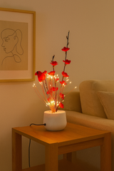 Infuse your space with passion and softness through the Red Blossom Fiber Optic Lamp. Designed with vibrant silk red flowers and shimmering fiber optic strands, this unique lamp blends floral beauty with captivating light effects. The warm LED glow creates a tranquil ambiance, perfect for intimate spaces like bedrooms, reading corners, or creative desks.