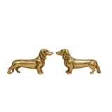 Charming and full of personality, this set of two gold dachshund figurines adds a playful yet sophisticated accent to your home decor. Crafted with detailed features and a sleek metallic finish, each dog is posed in a classic stance, facing one another as if in mid-conversation. The warm antique gold tone and textured surface lend a vintage feel, making them ideal for styling on bookshelves, nightstands, or entryway consoles.