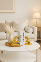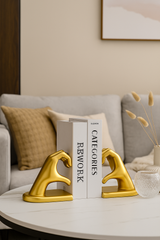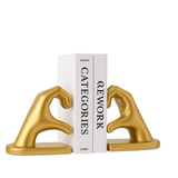 This artistic pair of gold bookends features sculptural hands poised in a graceful, gripping gesture, designed to securely cradle your favorite books. With a sleek matte metallic finish, the pieces blend functionality with bold, contemporary design. Perfect for modern interiors, these bookends add a stylish and sophisticated accent to bookshelves, desks, or coffee tables. They’re both practical and visually compelling, making them an ideal gift for design lovers and book enthusiasts alike.