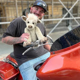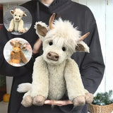 I'm thrilled to present a stunning White Highland cow. This cow, which takes more than 45 hours to make entirely by hand, is made of gorgeously soft winter white alpaca.